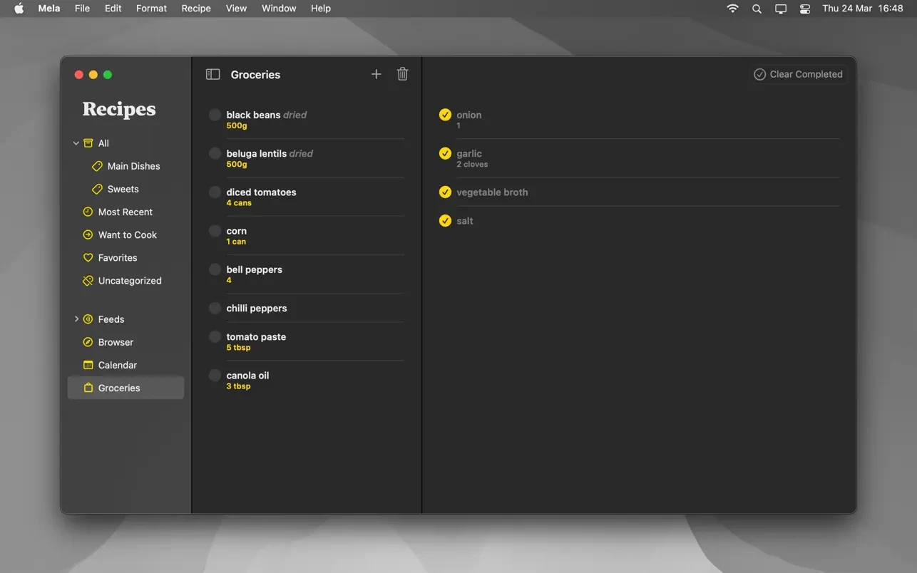 Mela 是一款简洁、优雅、现代的食谱管理器,支持 iCloud 同步。