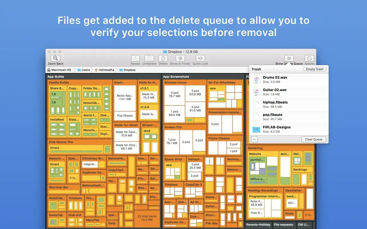 Disk Map 是一款能轻松可视化内部和外部存储设备上占用空间的应用程序。它能帮助你快速查找、删除或压缩大文件和文件夹,从而释放宝贵的存储空间。