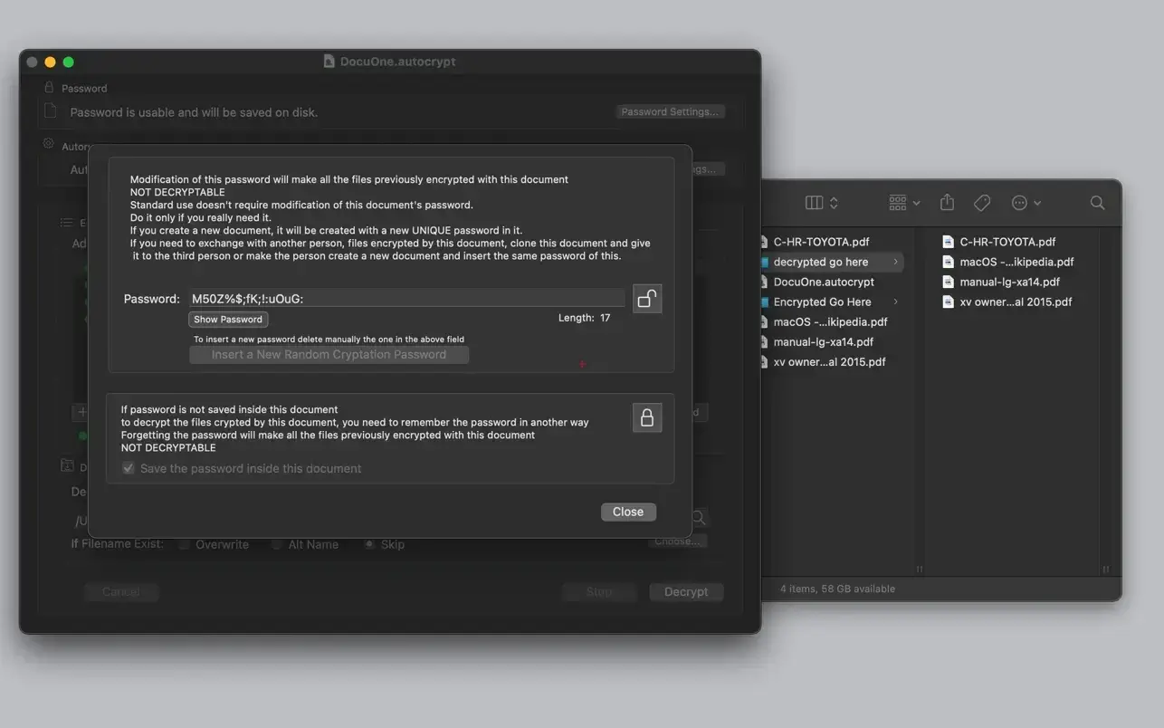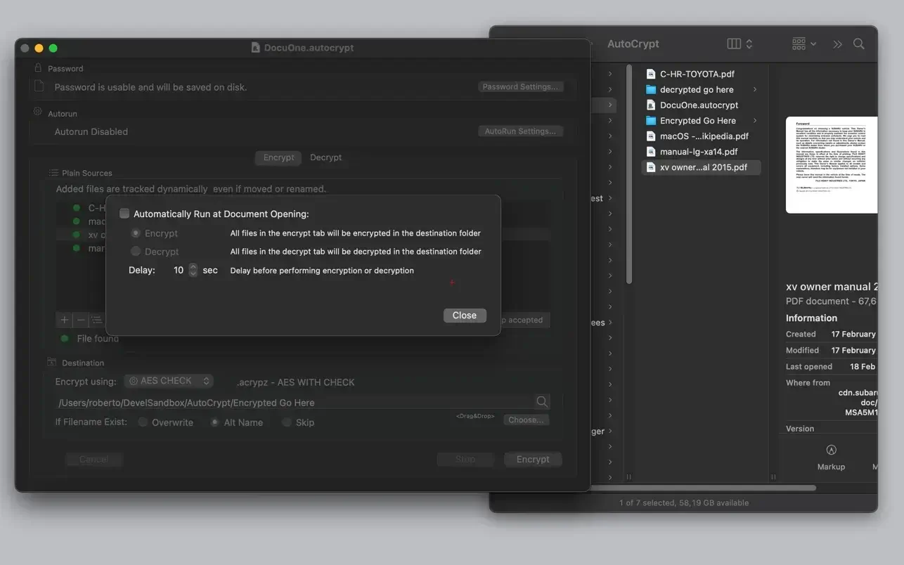- 所有用于加密源文件的设置都保存在AutoCrypt文档中。