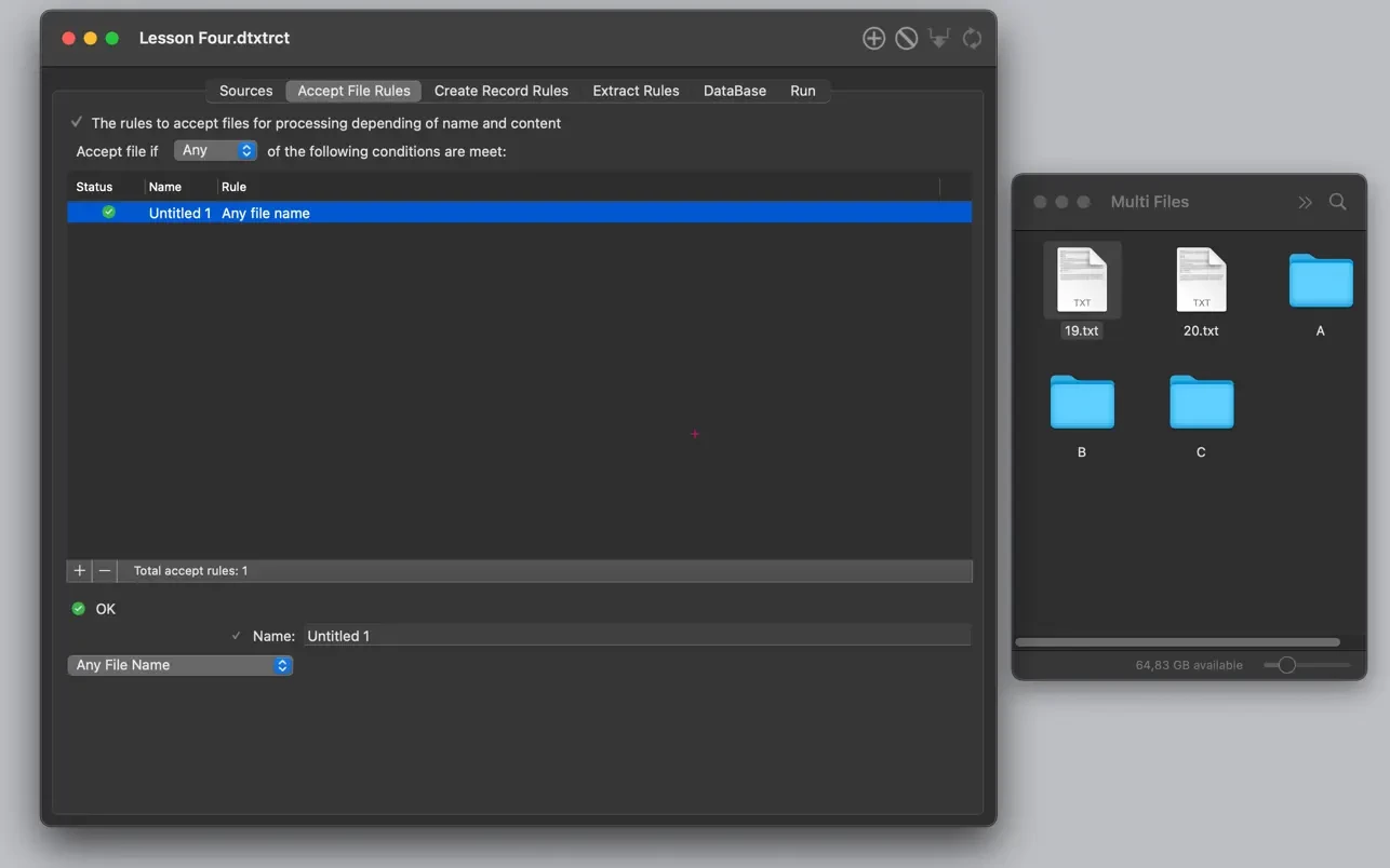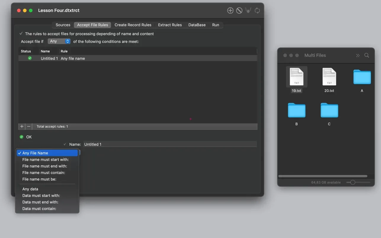 - 在“Accept file rules”(文件接受规则)中,你指定如何接受文件内容进行解析。