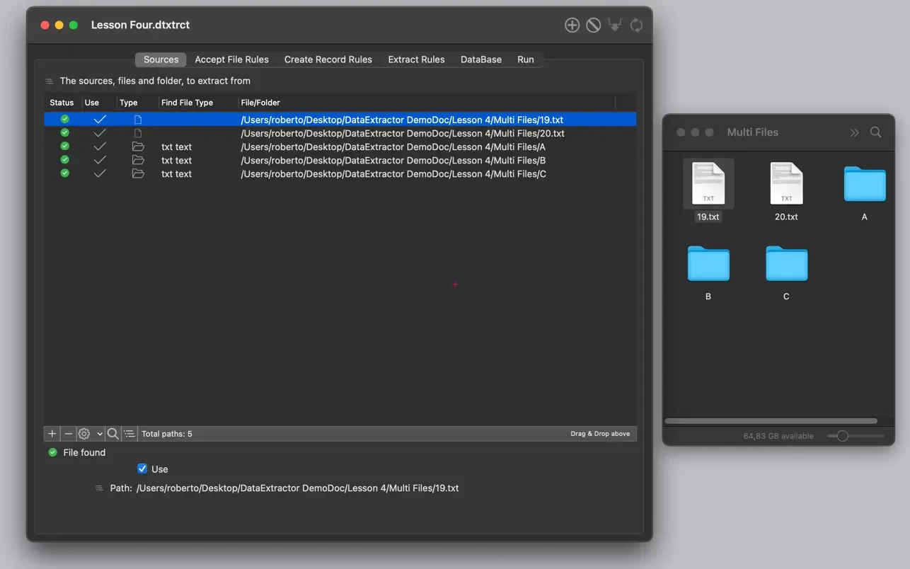 - 在“Sources”(来源)部分,你指定需要解析的文本文件,或需要导航和解析的文件夹。