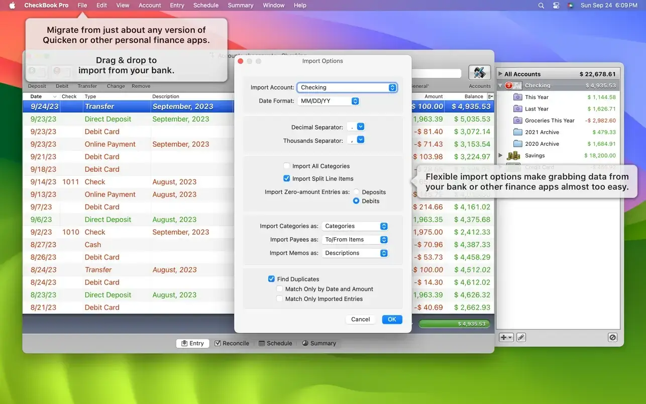 • 支持从 Quicken® Essentials for Mac 和 Quicken for Mac 2015 及更高版本导入。
