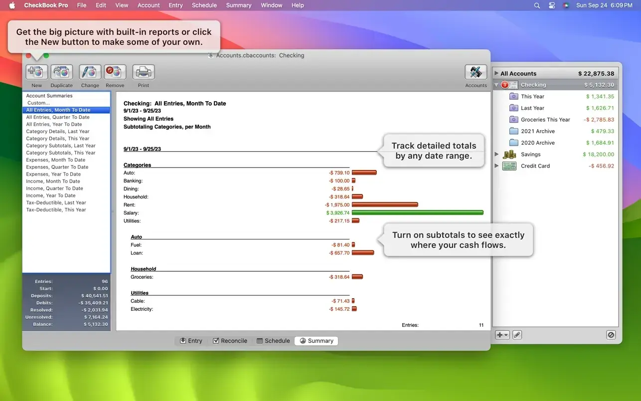 • 通过可自定义的报告来追踪您的资金流向,了解资金的来源和去处。