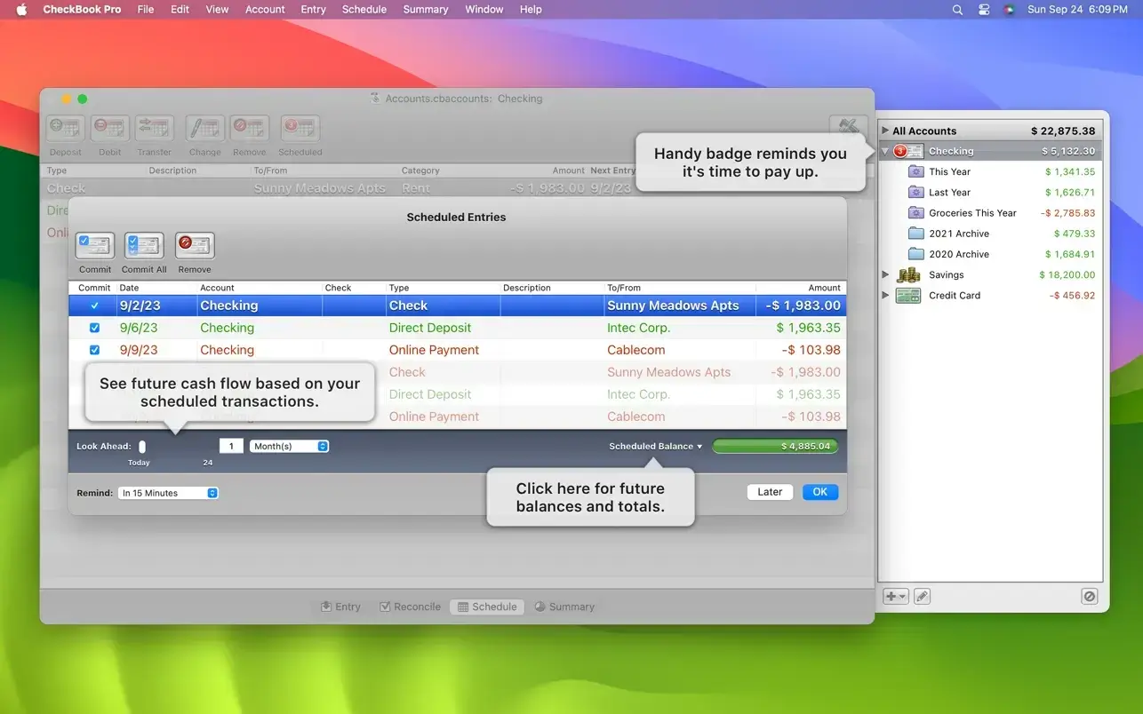 • 通过一个提醒,查看所有账户中待处理的计划交易。