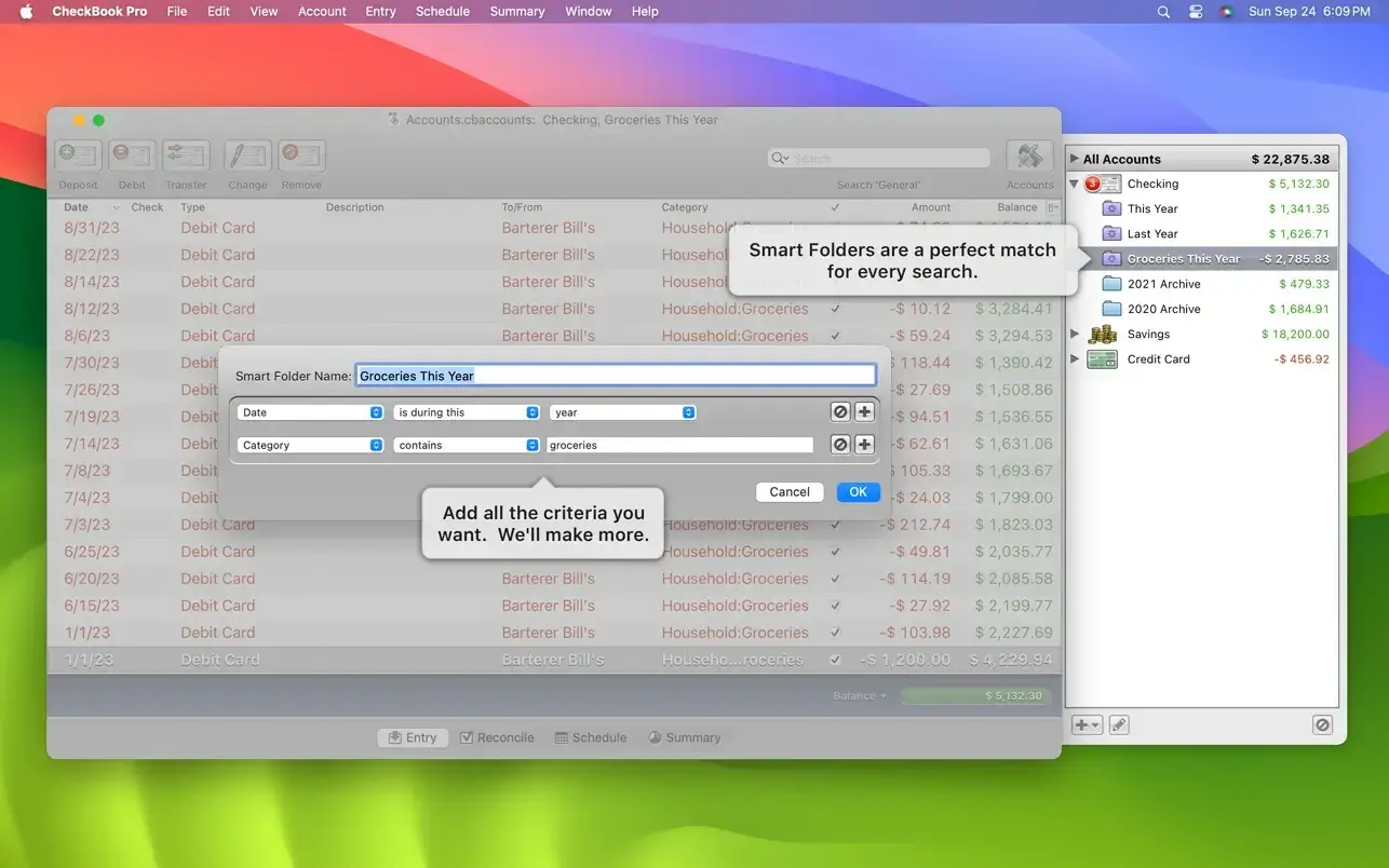 • 将交易分组到文件夹中,以整理数据或开启新的一年。