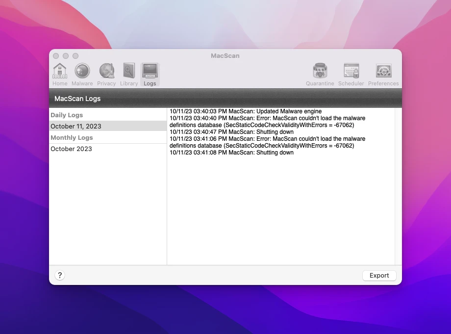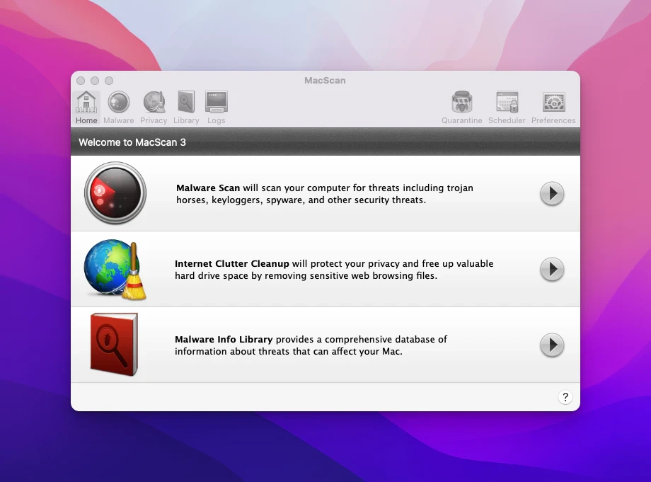 MacScan 通过直观的界面和高级扫描功能,简化了恶意软件防护。其自动更新恶意软件定义,确保您始终免受最新威胁的侵害。定期扫描功能让您即使不在电脑旁,也能监控电脑安全。