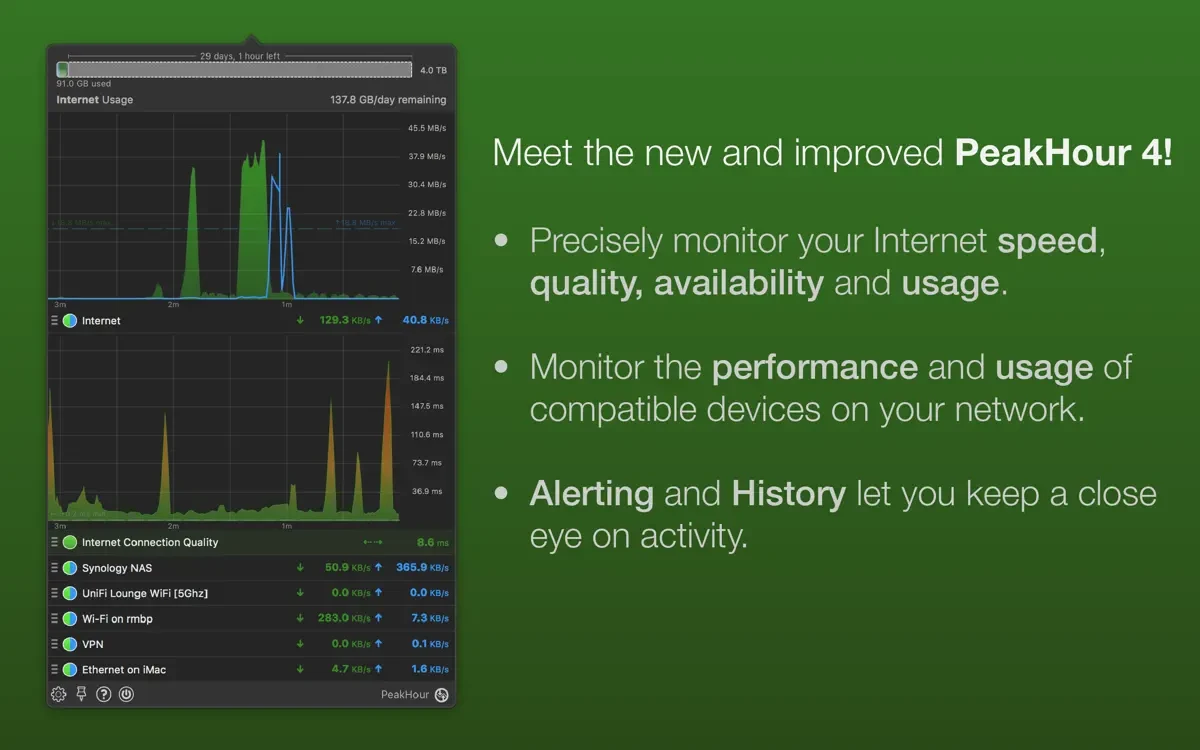 PeakHour 是一款精美的网络流量可视化工具,可在 macOS 菜单栏中实时显示当前网络流量。