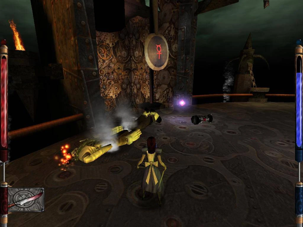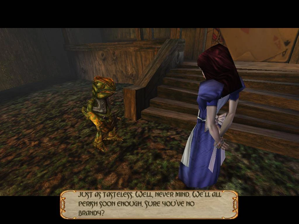 游戏采用id Tech 3引擎(《雷神之锤III》),确保了流畅的游戏体验和在2000年看来令人印象深刻的图形表现。玩家将操控爱丽丝,利用各种奇特的“玩具”作为武器(例如:伏尔帕之刃、冰杖或扑克牌)来对抗敌人、解决谜题和完成平台跳跃关卡。