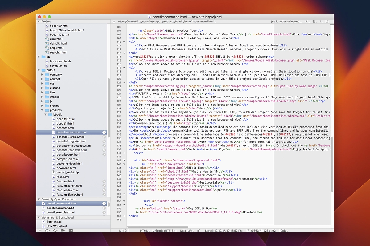 BBEdit是一款功能强大的文本和代码编辑器,它支持多种编程语言和标记语言(如HTML、PHP、C++、XML、Java、Perl等)的语法高亮。