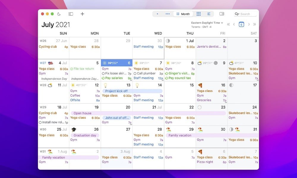 通过简洁明了的日程面板,您可以轻松切换日、周、月视图。此外,您还可以更详细地自定义外观。您不仅可以选择字体样式和大小、事件颜色标记,还可以调整月份显示几周、每周显示几天。这个界面旨在满足您的个性化需求。