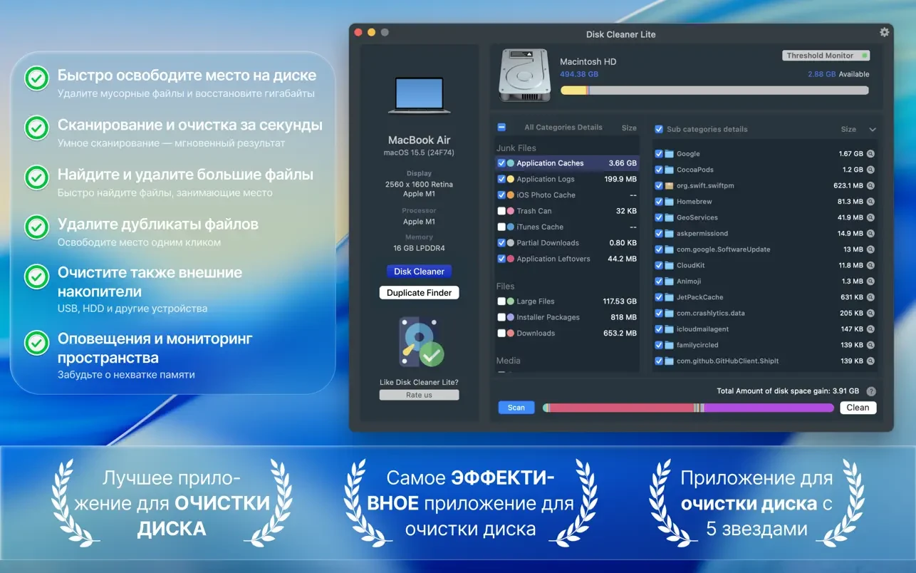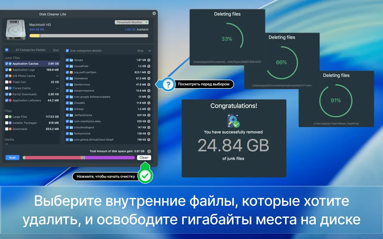 让 Disk Clean App 帮您清理垃圾,释放大量存储空间。