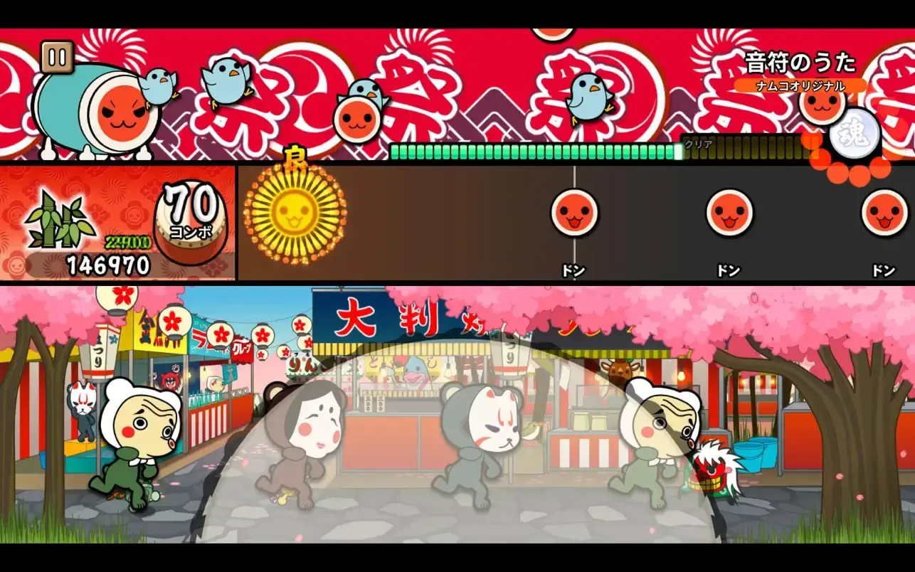 命中音符会增加魂量槽,漏掉音符则会减少。如果在歌曲结束时,魂量槽的数值超过指定线,就算挑战成功!
