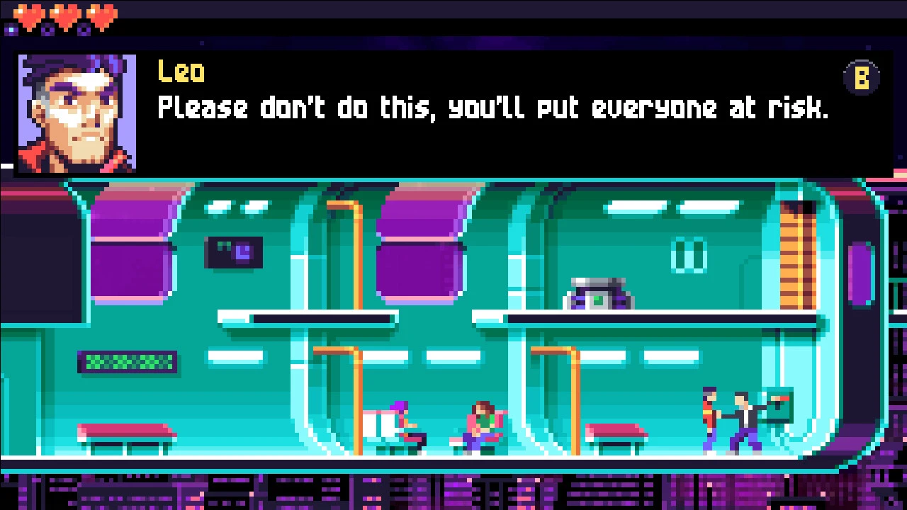 你将扮演莱奥,一个拥有独特能力和神秘过往的信使。在精美的像素动画场景中,例如反乌托邦的大都市、阴森的洞穴或外星森林,你将奔跑、跳跃、攀爬、滚动和射击。