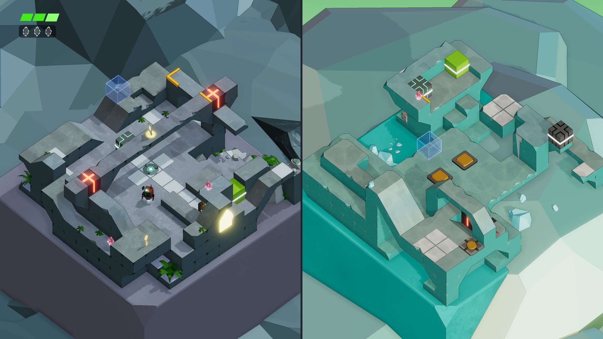 Blit 是一位勇敢的宇航员机器人,他被困在 SO-671 星球上。这个神秘的世界在一场远古灾难中被撕裂成两半。Blit 可以利用量子能量在平行世界之间传送,轻松穿梭于 SO-671 复杂的地形。这在派对上也是一个很酷的绝活。