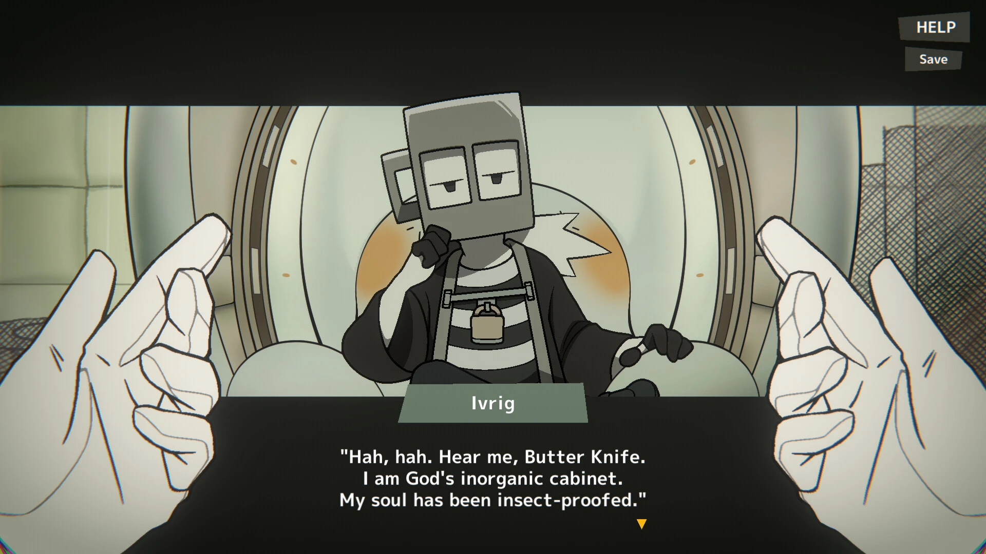 在冒险旅程中,你将在一个反乌托邦的世界里遇到并与各种各样的反派角色交流。每个角色都拥有独特的性格和狡猾的心思。主角的双手会一直显示在游戏画面中,用生动的动画为你和角色的对话增添色彩。