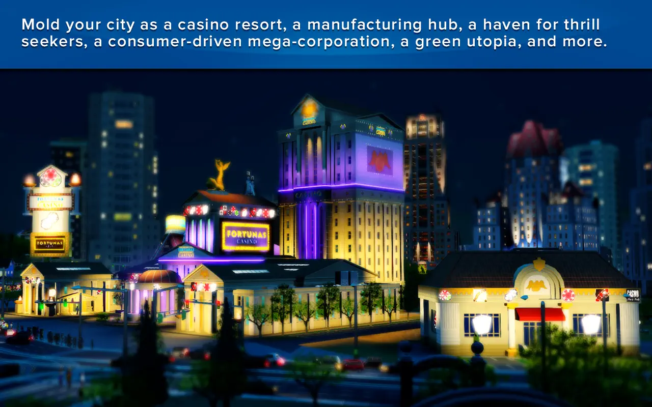 打造你的城市:你可以将其塑造成任何你想要的模样,无论是博彩之都、工业中心、极限运动天堂,还是消费主义的巨型都市,又或是绿色环保的理想家园。这是有史以来最全面的城市建造模拟游戏,为你提供极致的创作自由。