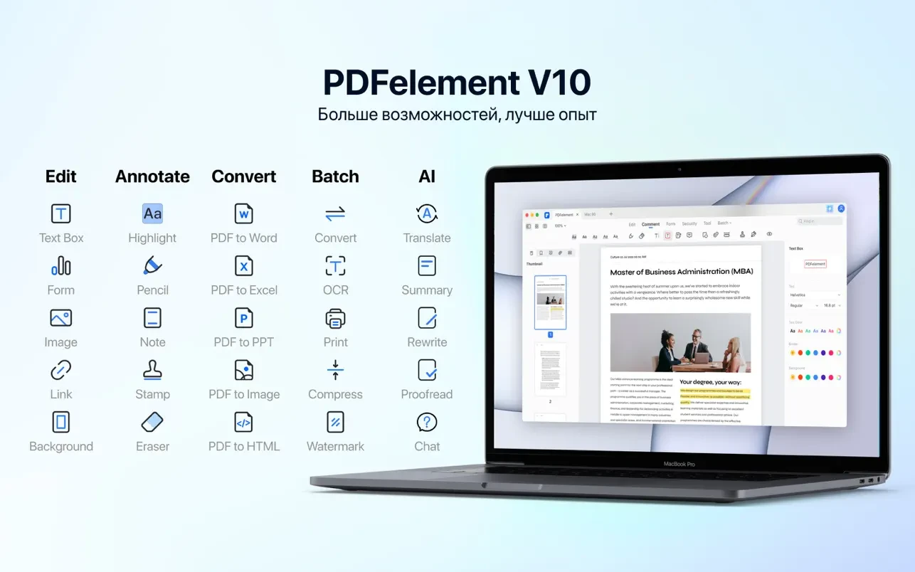 • 具备 PDFelement Standard 的所有功能。