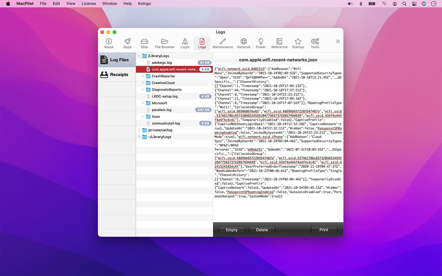 通过运行常规维护脚本来优化和修复系统,例如 cron、启动服务和预绑定。重置下载隔离列表、强制清空废纸篓、轮换系统日志并恢复非活动的系统内存。