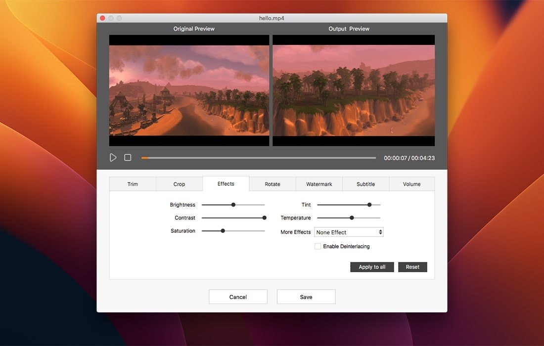 转换过程无质量损失。内置的视频增强器可将原始质量保持在最高水平,甚至能提升质量,同时还提供高质量的配置选项。