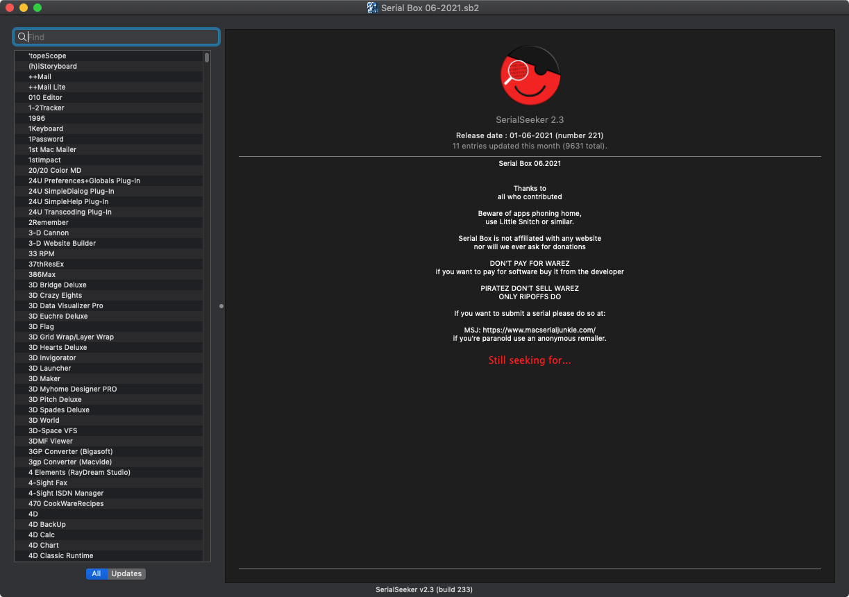 iSerial 项目的序列号数据库。