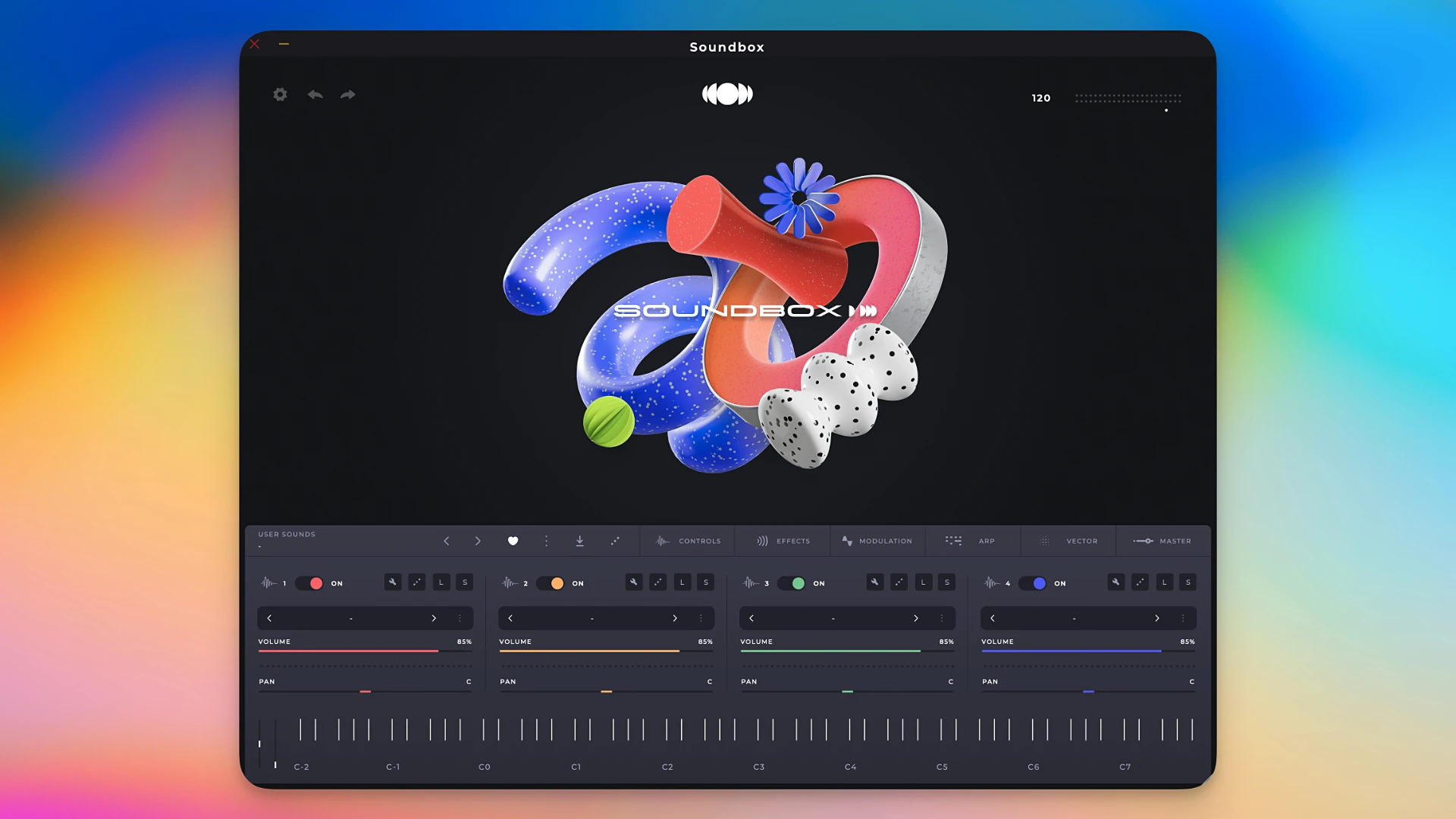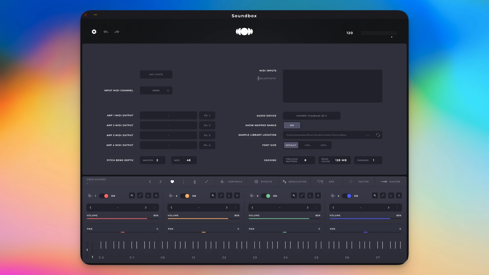 • MPE 和多点触控支持: Soundbox 是少数支持 MIDI 多维复音表现和多点触控界面的采样器之一。