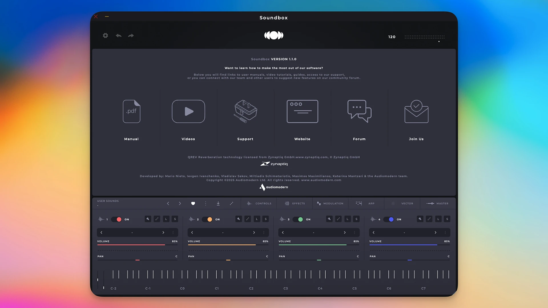 - MPE 和多点触控支持: Soundbox 是少数支持 MIDI 多维复音表现和多点触控界面的采样器之一。
