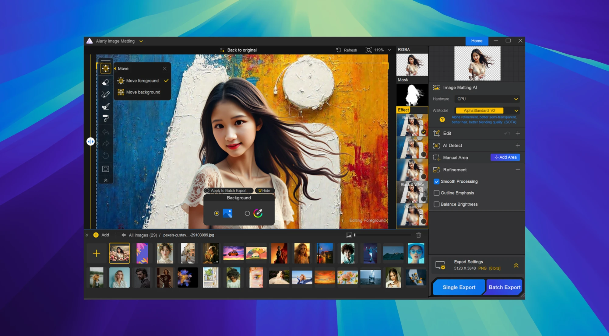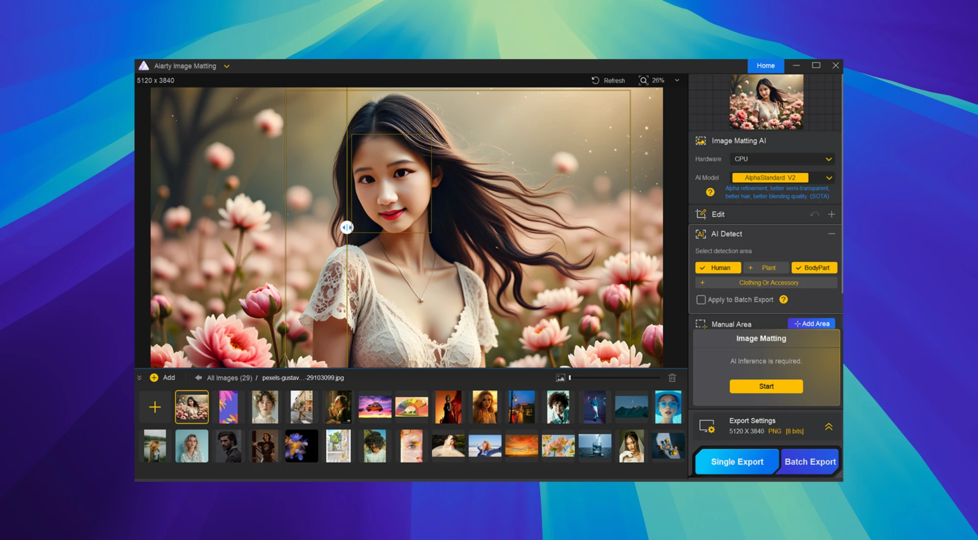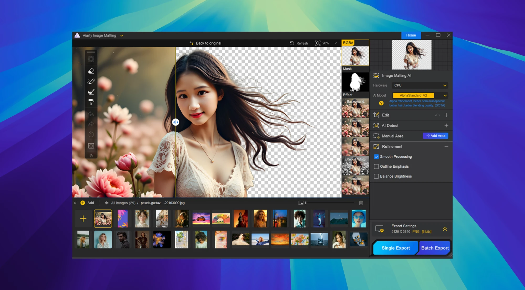 - 核心功能: 现代人工智能驱动的图像抠图软件,专为您的 AIPC(AI 个人电脑)设计,提供精确的背景移除、针对头发、皮毛和透明物体的高级 Alpha 抠图,以及前景与背景的无缝融合。