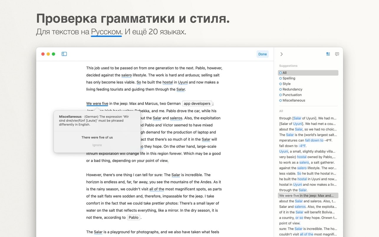 尽情创作,无需担心丢失您的宝贵内容。您的作品会安全地保存在 iCloud 云盘上。如果您在 iOS 设备上安装了 Ulysses,您就可以随时随地处理您的文本。