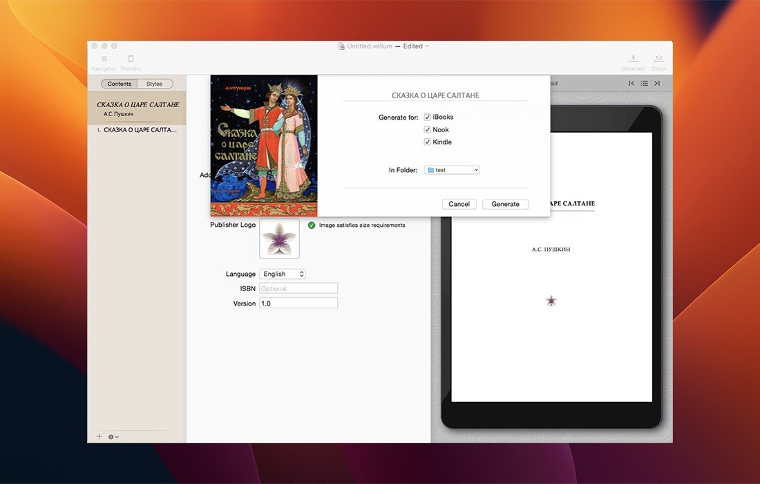 当您对书籍感到满意时,可以同时生成电子书和印刷版。即使需要进行修改,两个版本也能保持同步。