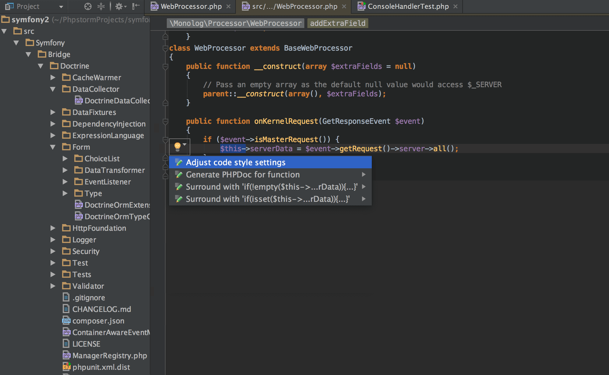 PhpStorm 能够深入分析代码结构并真正理解您的代码,为新项目和旧项目提供完整的PHP语言支持。其代码编辑器支持自动补全、重构,并能即时预防潜在错误。