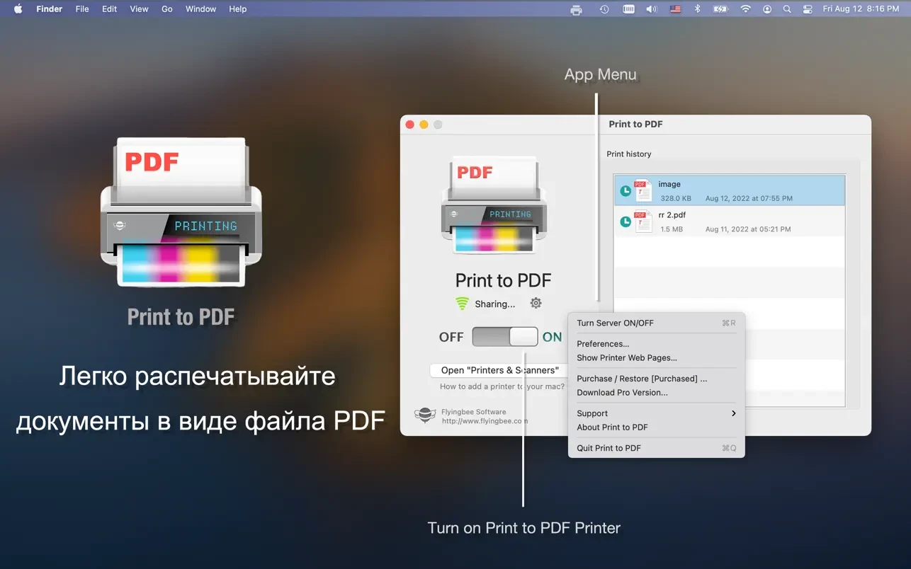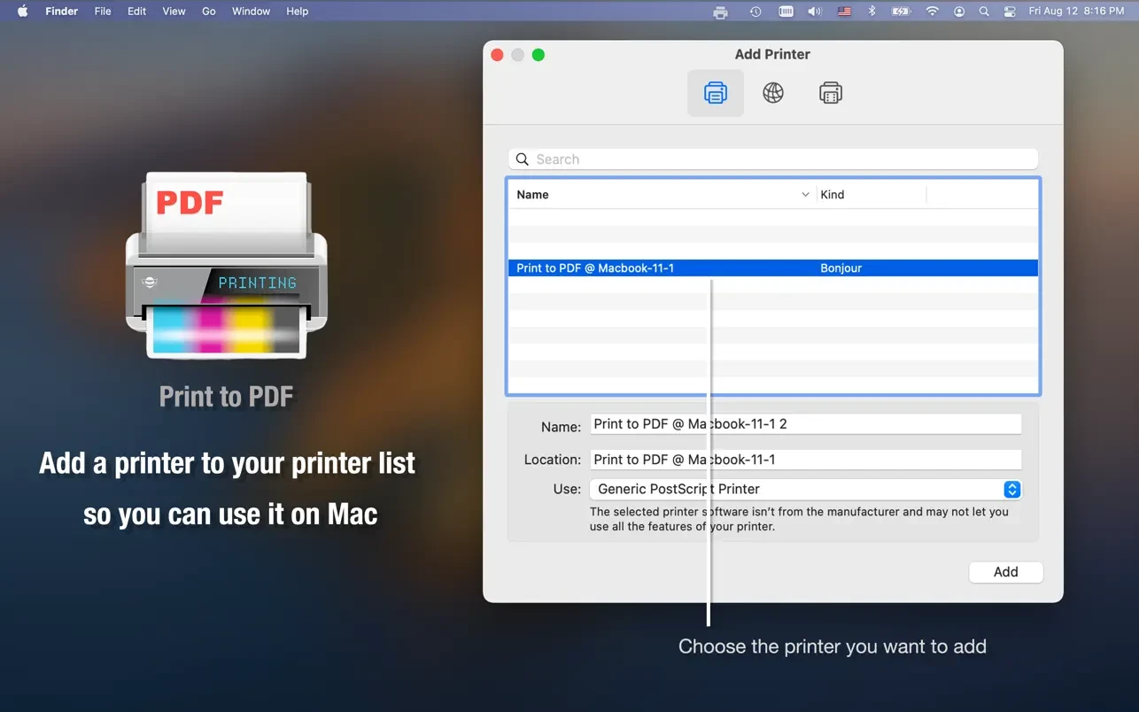 这个应用程序相当于一个小型无线打印机服务器,你可以在 Mac 的系统设置中添加它。有了它,你就可以直接将任何文档打印成 PDF 文件。