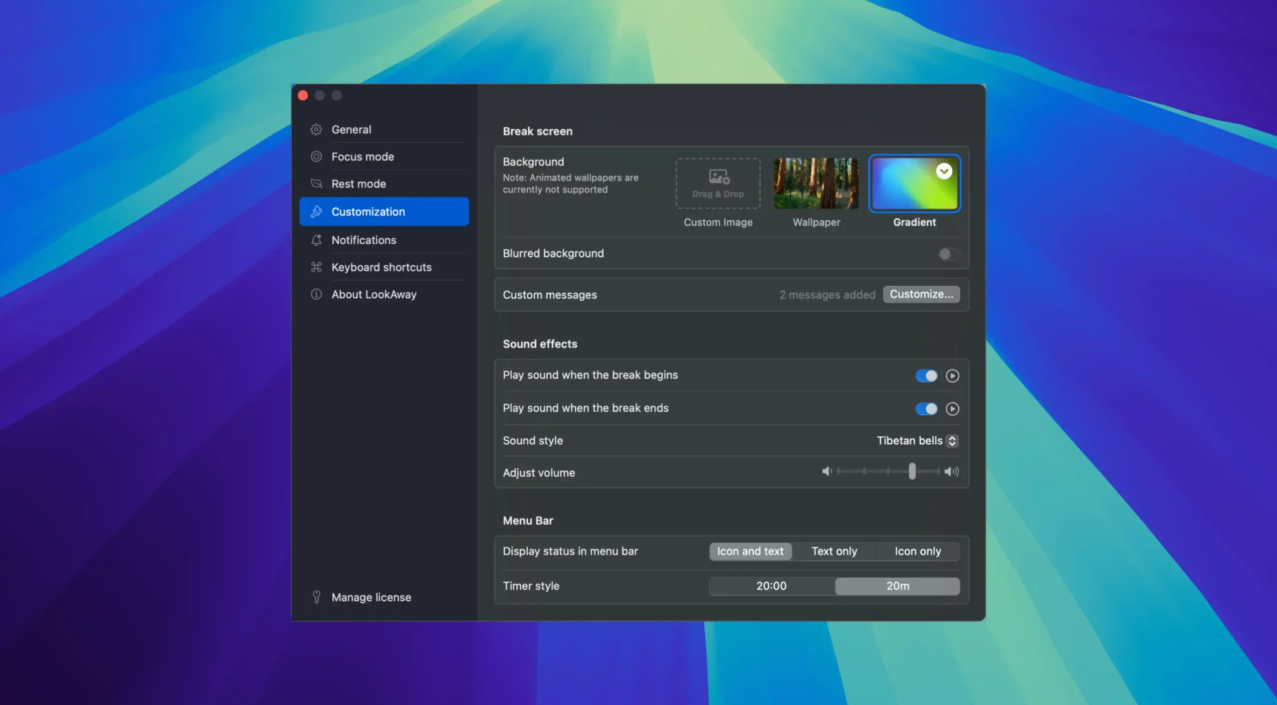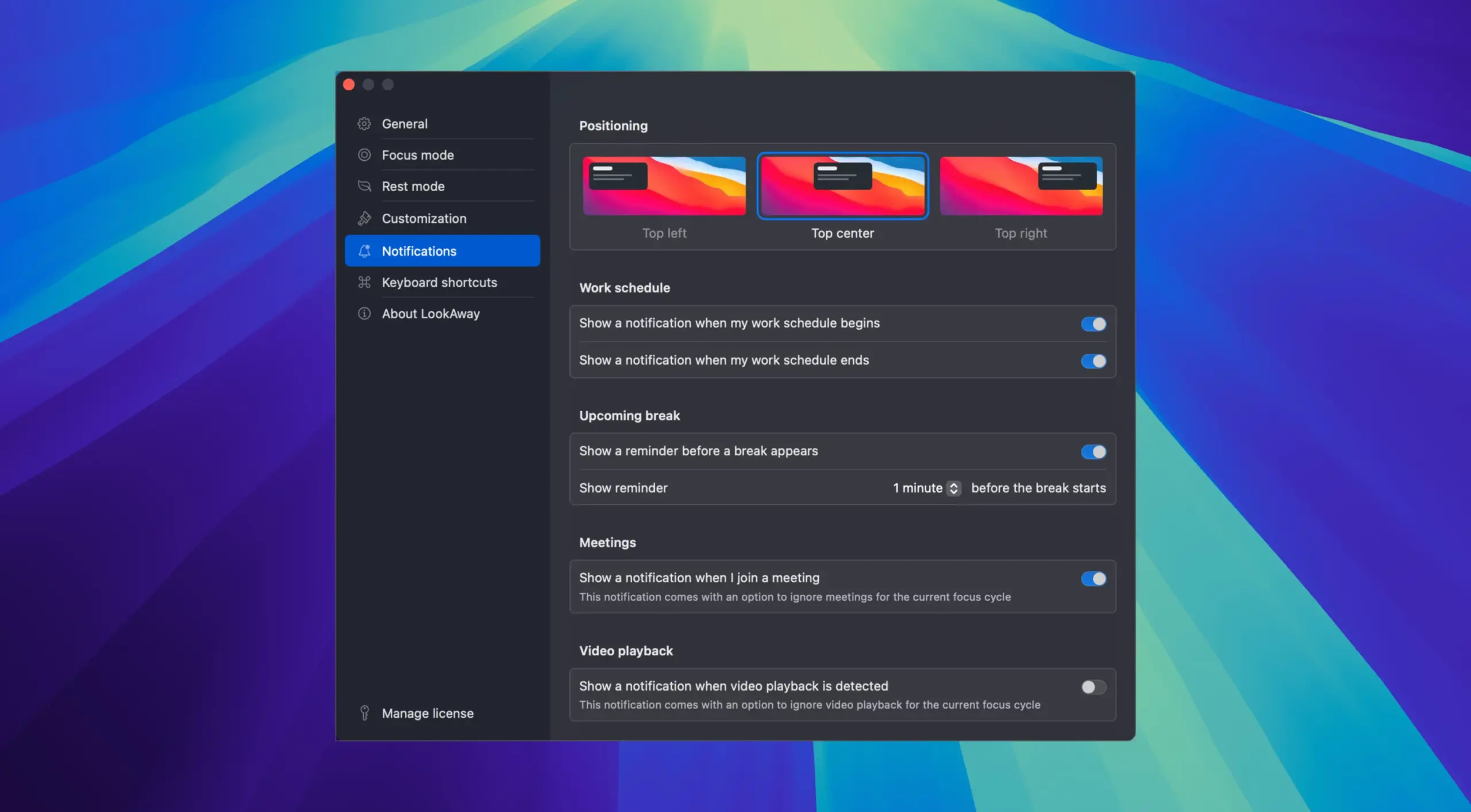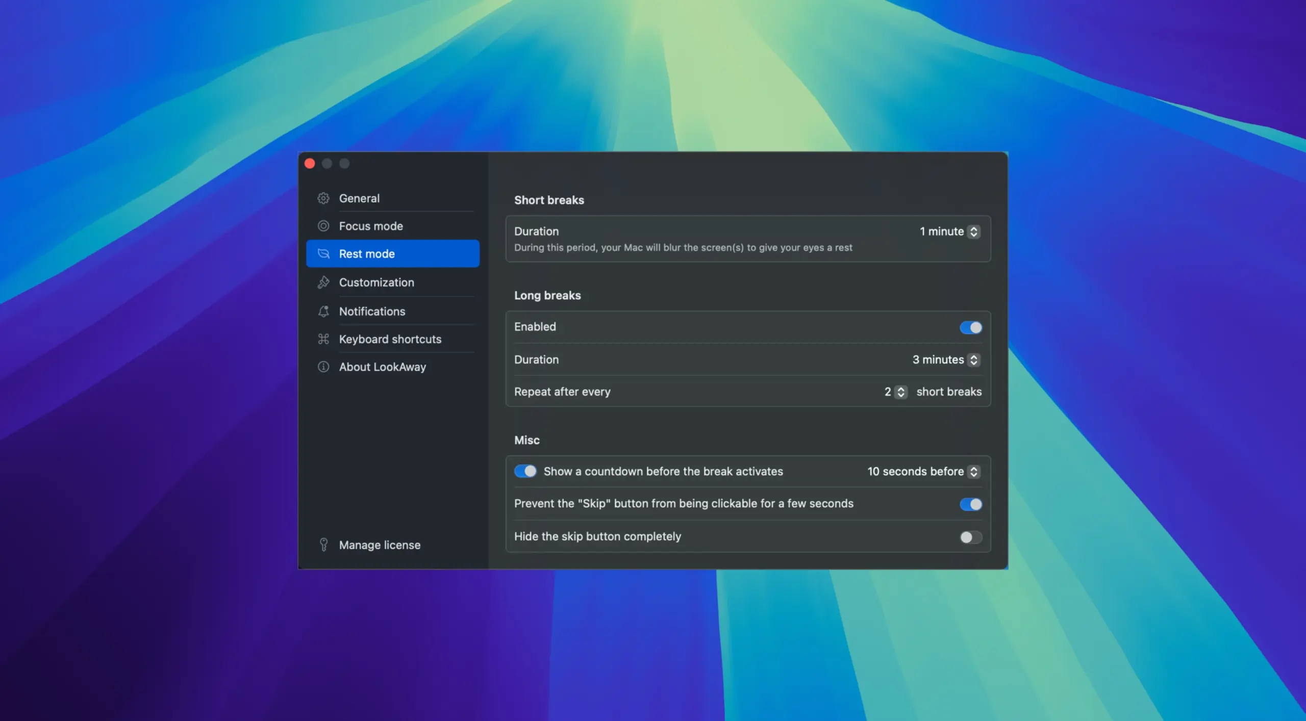 LookAway — 一款适用于 macOS 的应用,专为 减轻视觉负担 设计。它能帮助用户维护眼部健康,在长时间面对屏幕工作时,提醒用户需要进行 定期休息。