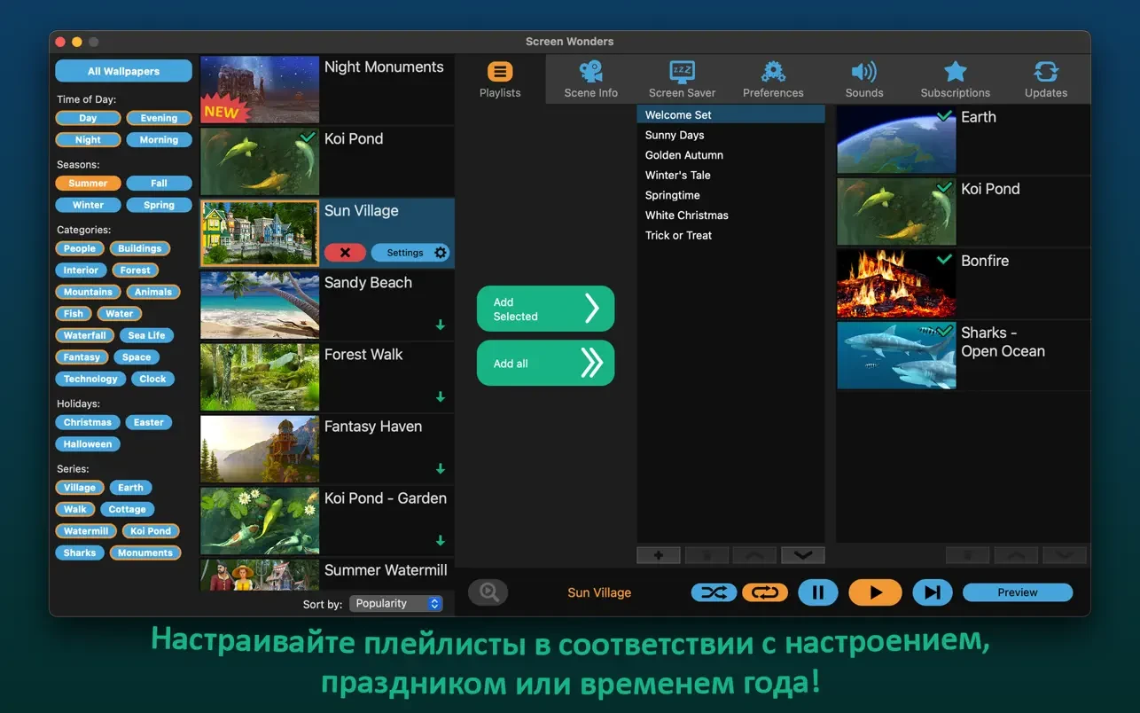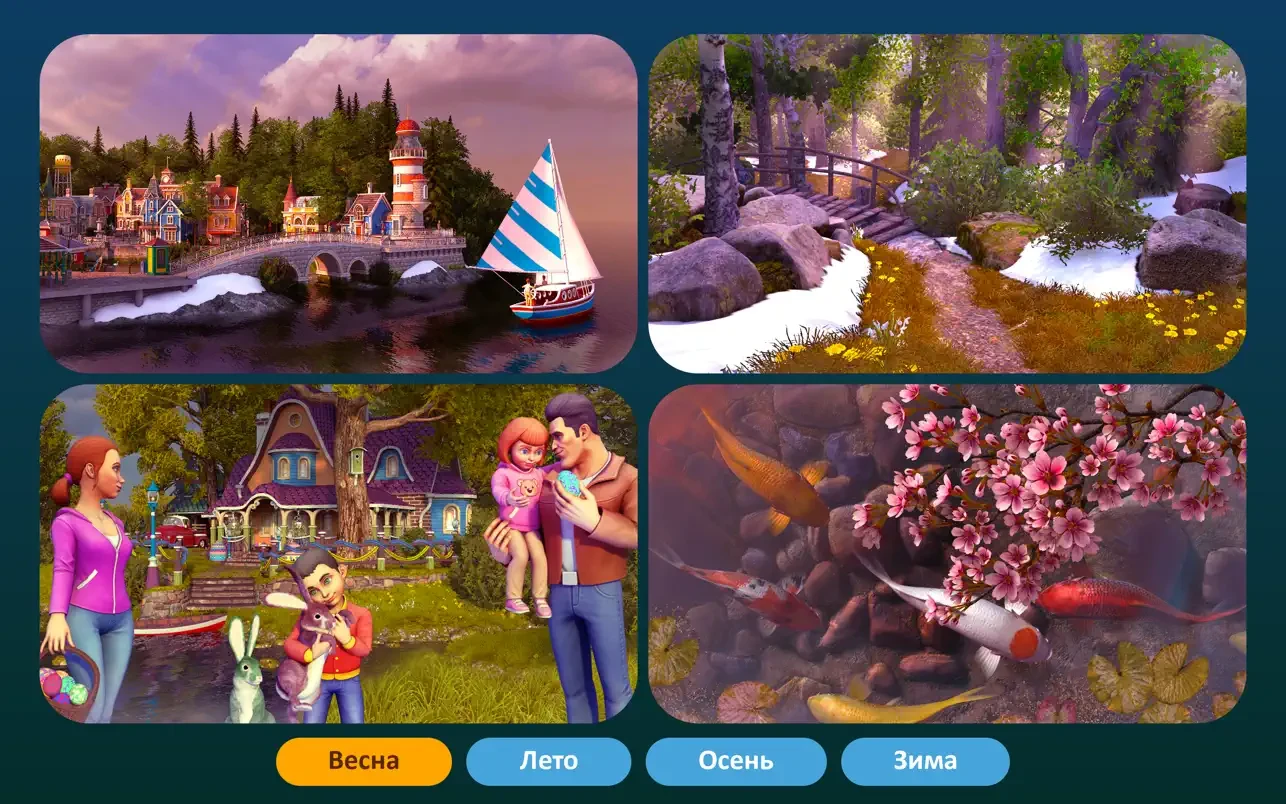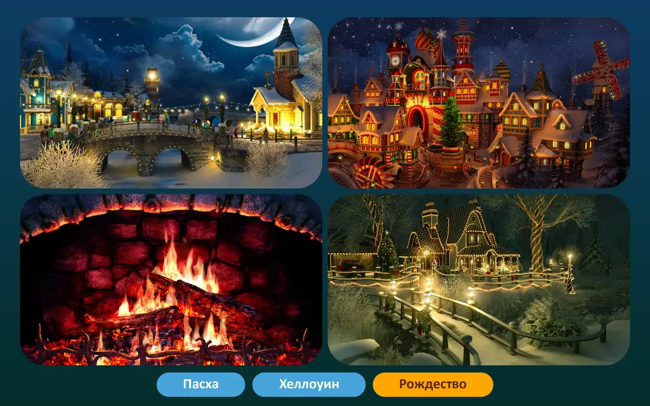 多种多样的主题、季节和节日场景,配以原创的音轨,一定会让你心动不已。所以,请舒适地坐下来,放松身心——奇迹即将呈现在你的屏幕上!