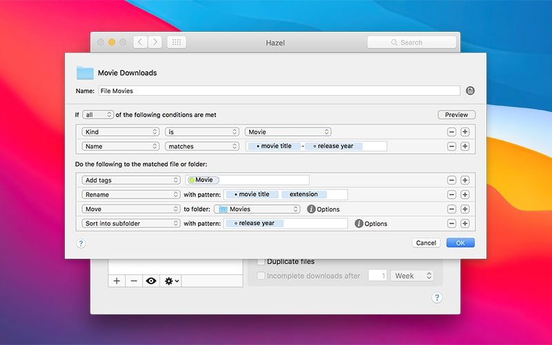 当一个或所有设定的条件满足时,Hazel 就会执行预先设定的操作。