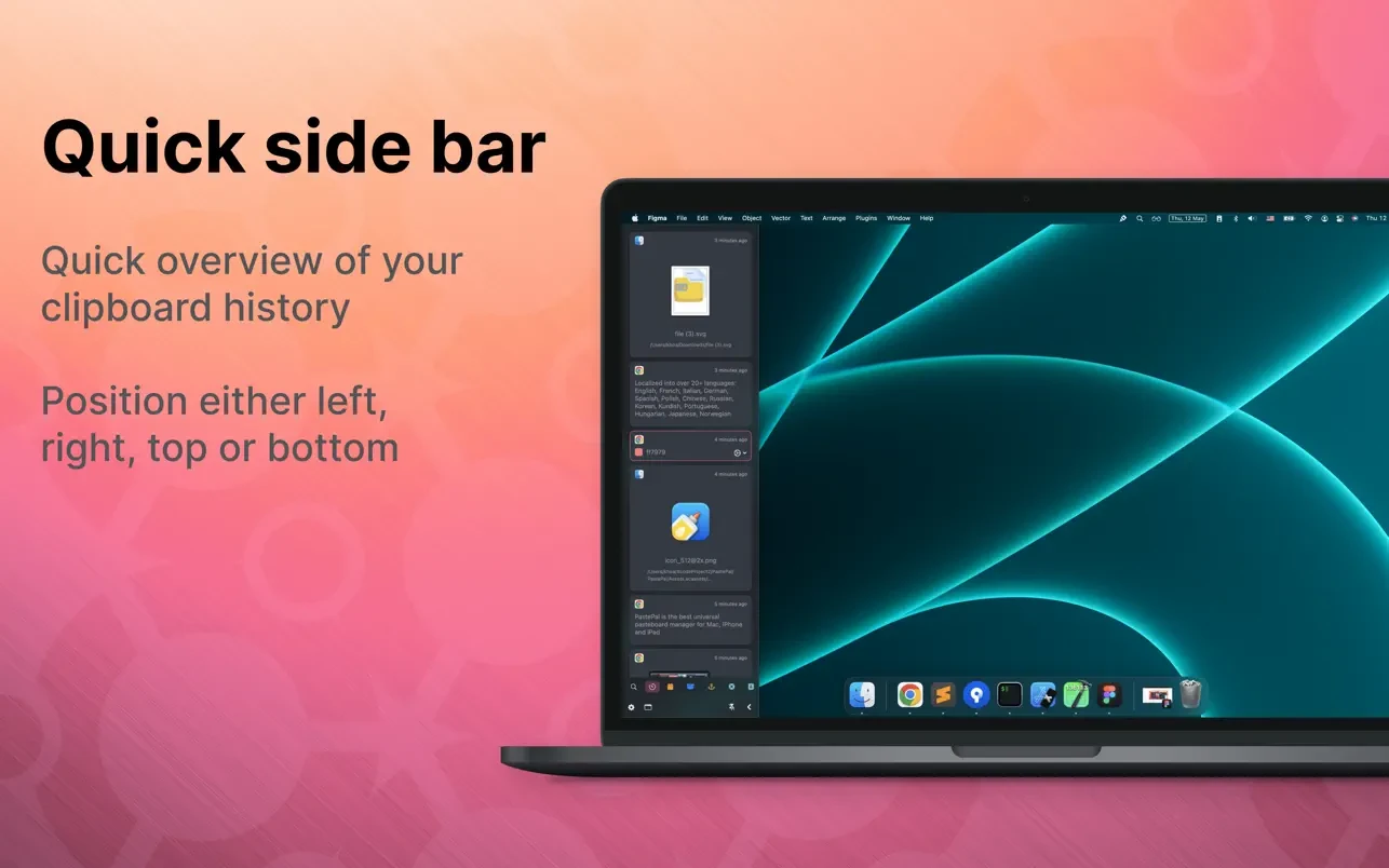 - 侧边窗口:可快速访问最近的历史记录,可放置在屏幕的顶部、左侧、底部或右侧。