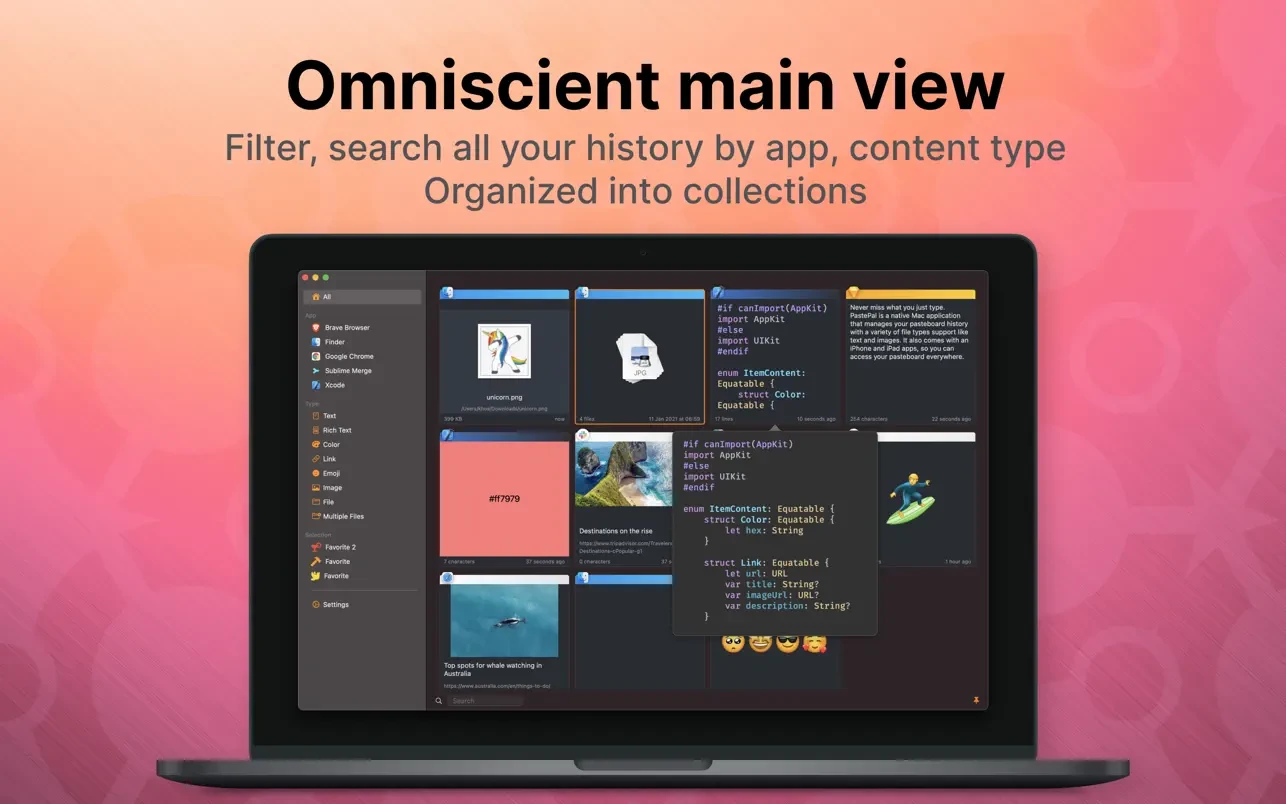 PastePal 是一款使用纯 Swift 编写的原生应用,旨在提供对剪贴板历史记录的全面控制。