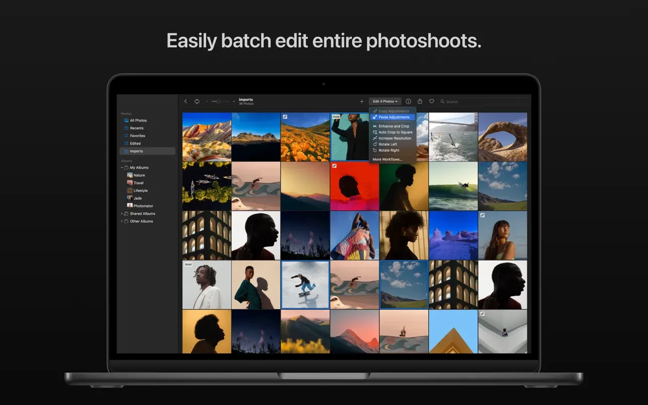 • Без труда копируйте и вставляйте изменения между фотографиями или пакетно редактируйте целые фотосессии одновременно.