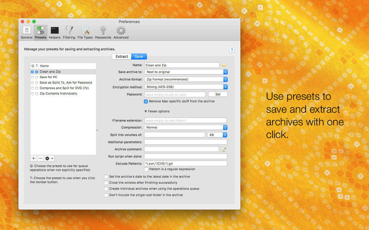 通过在 AppleScript 脚本中使用 BetterZip,将其整合到您的工作流程中。更不用说 Finder 和其他知名应用程序中方便的 zip 功能了。