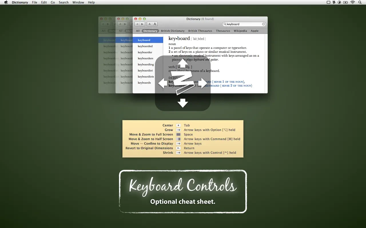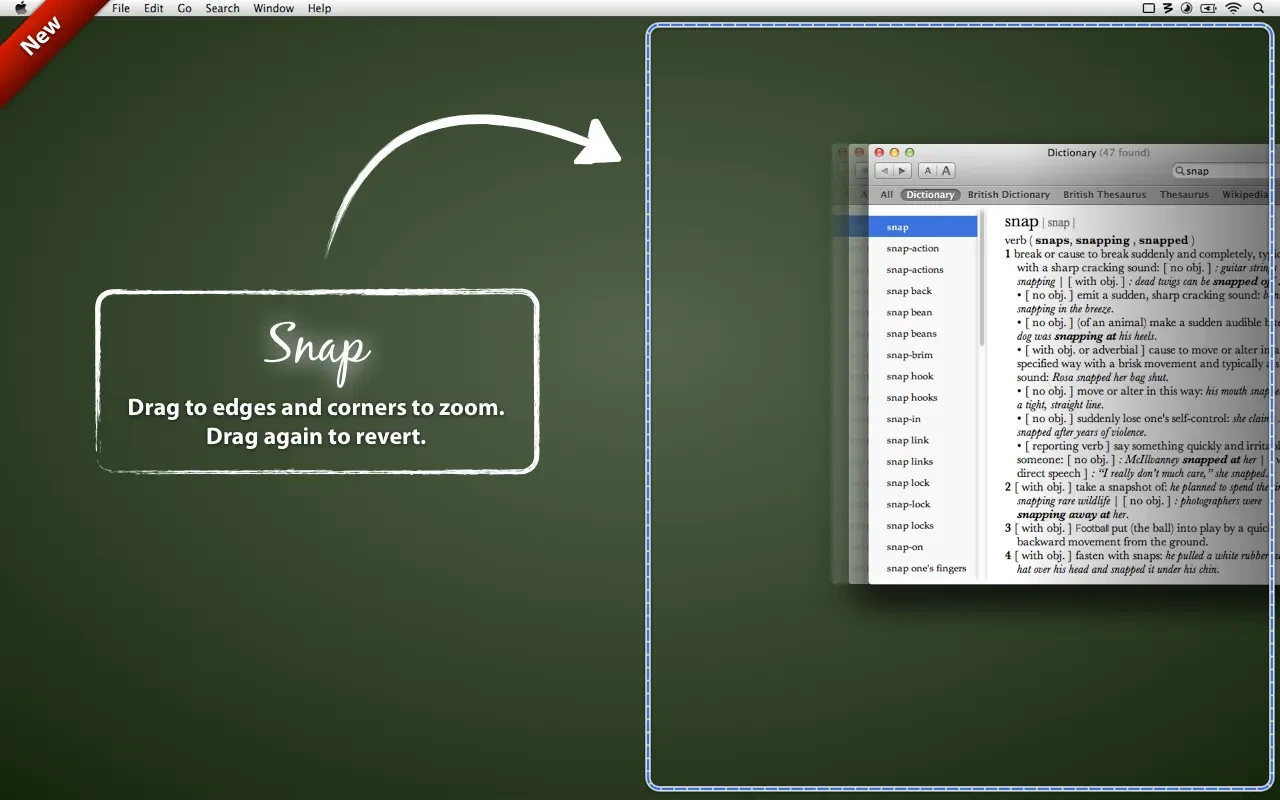 - 标准的模板集允许用户通过一次鼠标点击将窗口最大化至全屏,或者只占据屏幕的一半并移动到屏幕的某一侧。