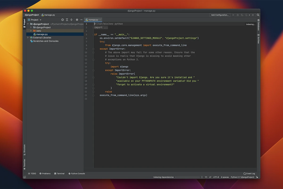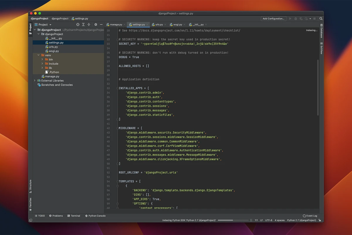 PyCharm 全面支持主流的 Web 开发框架,包括 Django、Flask、Google App Engine、Pyramid 和 web2py。