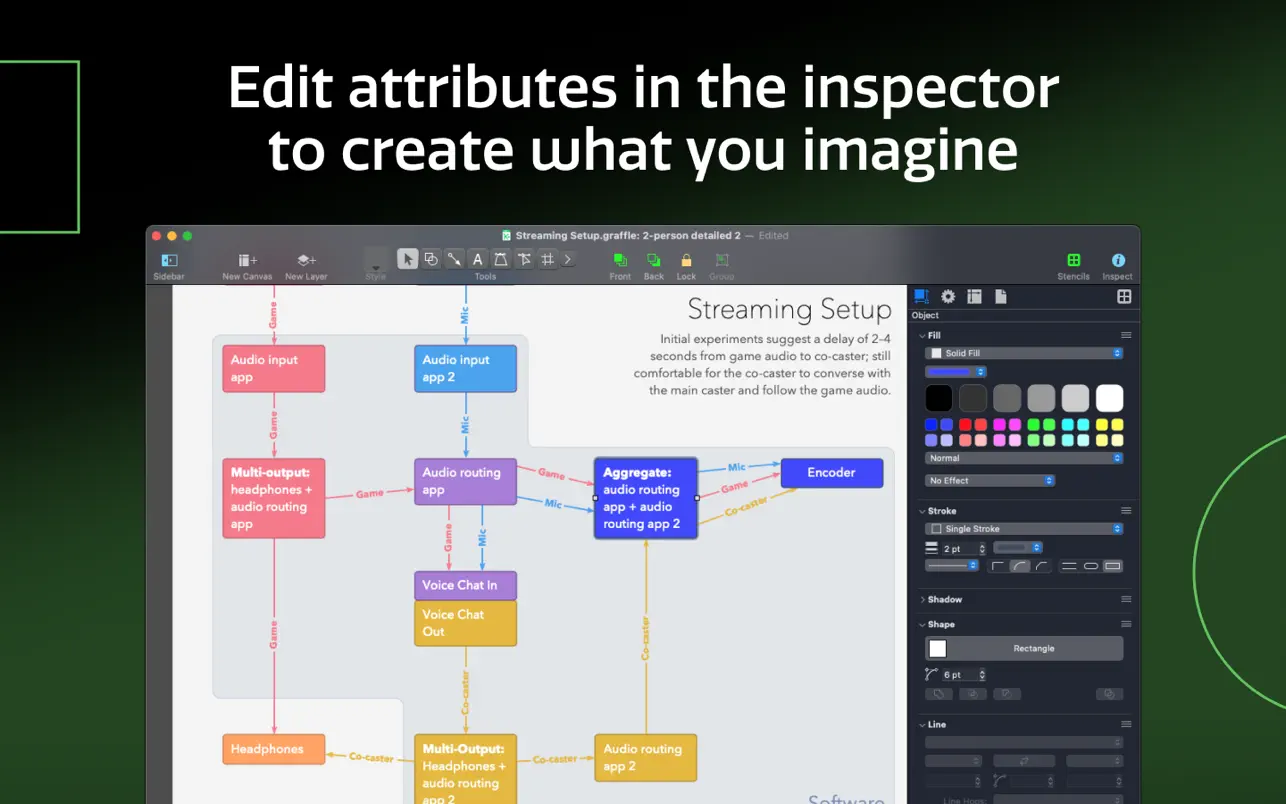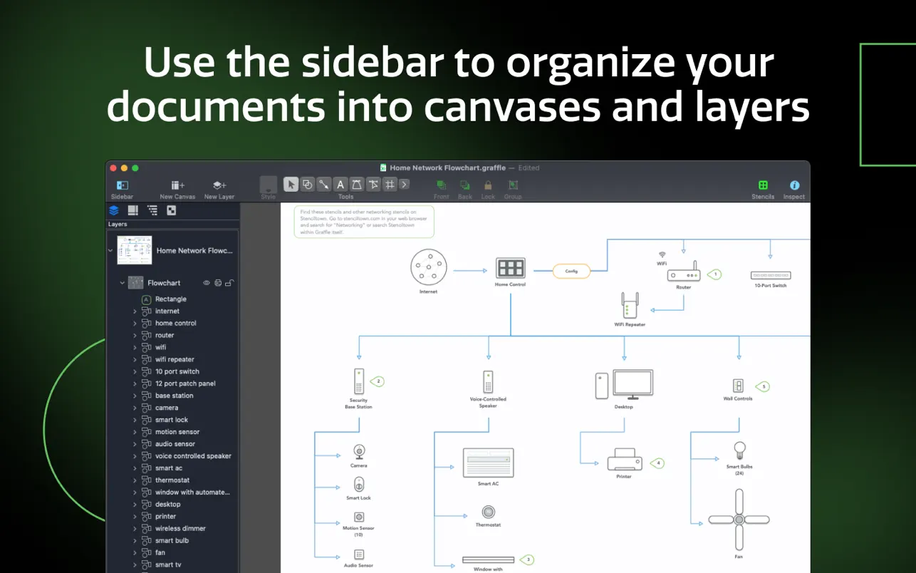 OmniGraffle 7 是一个全新版本,带来了许多重大改进。从调整贝塞尔曲线上的单个控制点,到新增的画板功能,一切都变得更强大。全新的侧边栏和更人性化的检查器,让你可以更轻松地管理无限大的画布。