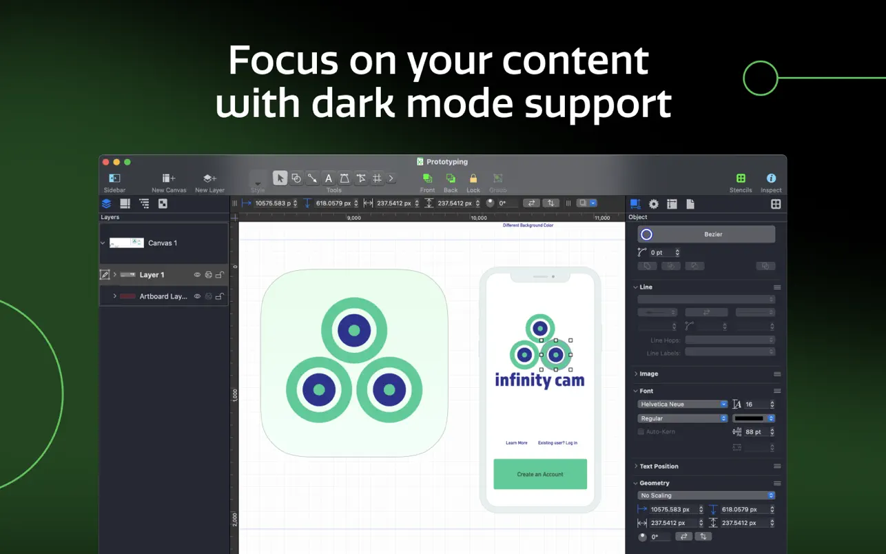 - 线条转图形:线条可转换为图形,并使用易于编辑的贝塞尔曲线点进行调整。