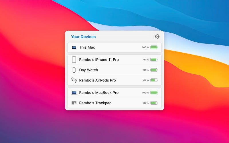 - 通过状态栏菜单,可以一目了然地查看所有 Apple 和 Beats 设备(包括 iPhone、iPad 和其他安装了 AirBuddy 2 的 Mac)的电量状态。