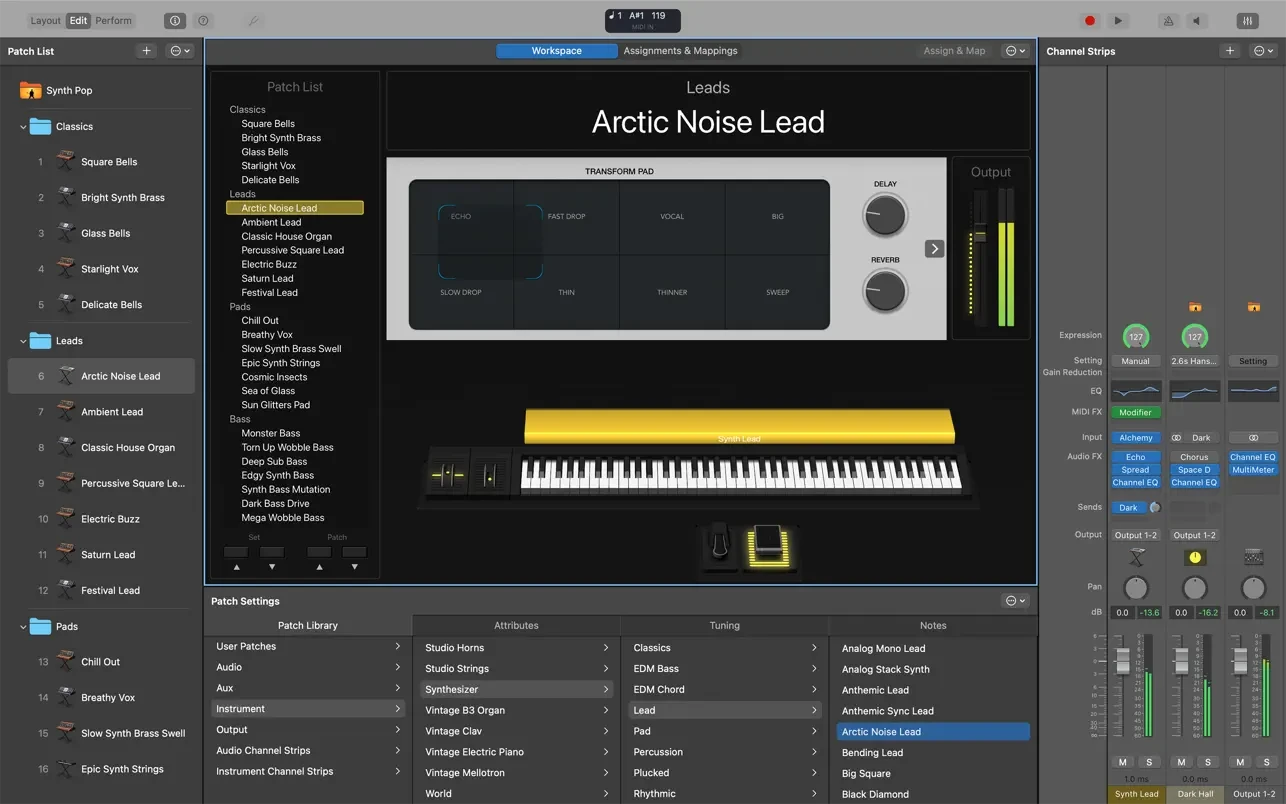 • 通过拆分、分层、Arpeggiator 和其他 MIDI 插件,创建复杂的键盘乐段。