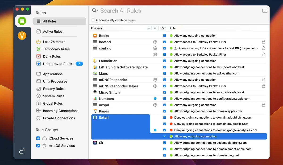 Little Snitch 5 开发的重点是集成 Apple 在 **macOS Big Sur** 中引入的新网络过滤技术。底层过滤引擎经过**彻底重建**,取代了先前基于内核扩展的方法,因为 macOS 不再支持该方法。