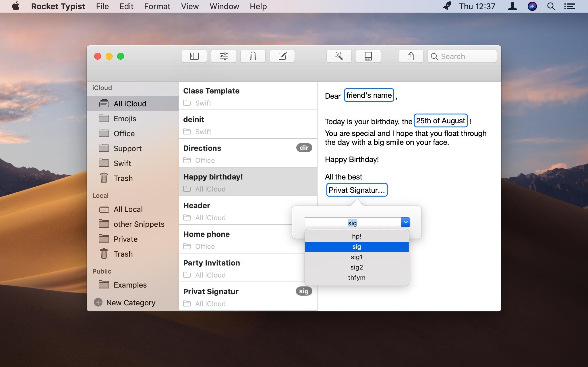 Rocket Typist 是一款专为 Mac 设计的现代化应用,旨在让你的工作流程更高效。通过它,你可以创建文本片段,并用简单的缩写来调用它们。一旦设置完成,你将再也不需要重复输入这些内容。