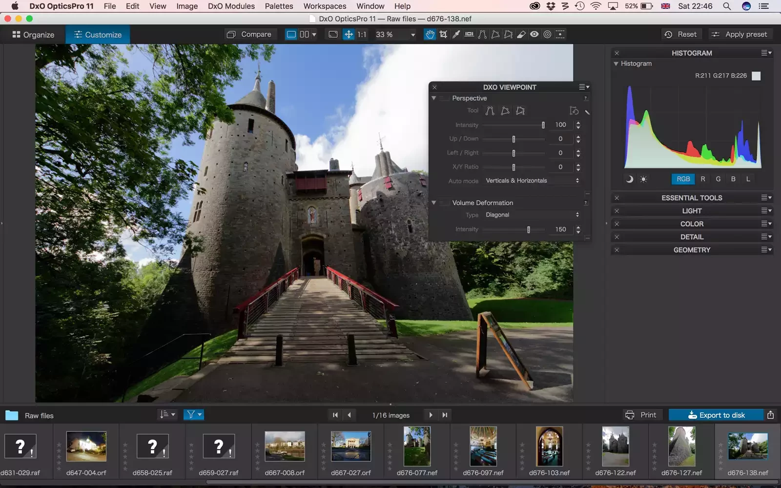 借助独一无二的 DxO 光学模块数据库,DxO ViewPoint 能够校正各种类型的畸变,包括桶形、枕形,甚至鱼眼效果。