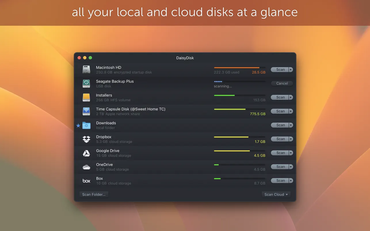 • 独特的界面设计,让用户轻松定位和删除大型无用文件。
