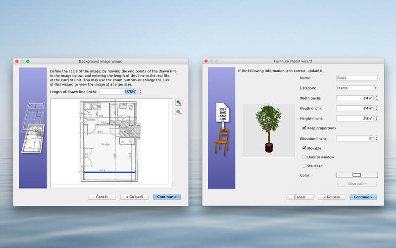 • 从包含 1400 多个按类别分类的物体目录中,将门、窗和家具拖放到平面图上。用户还可以导入自己创建或从网络下载的 3D 模型。