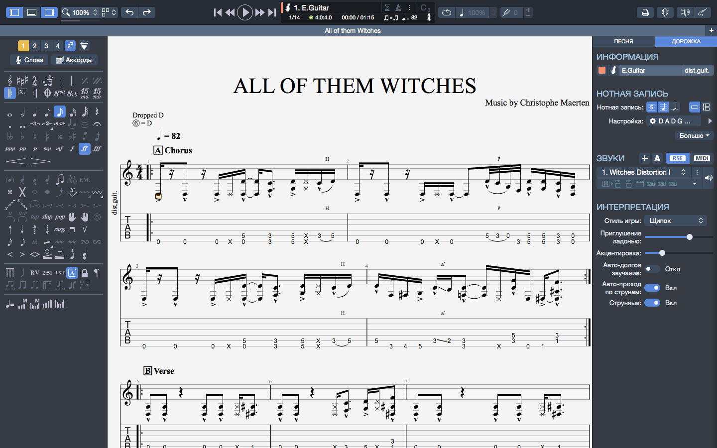 Guitar Pro 支持编辑吉他、贝斯和尤克里里的乐谱和六线谱,还可以为鼓和钢琴创建伴奏音轨。对于想要提升技能、创作或只是跟着演奏的音乐家来说,这是一款周到而便捷的工具。